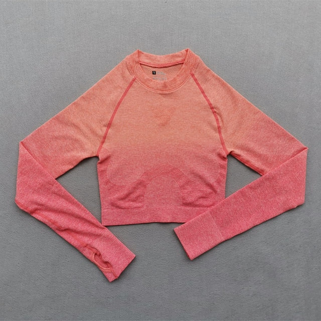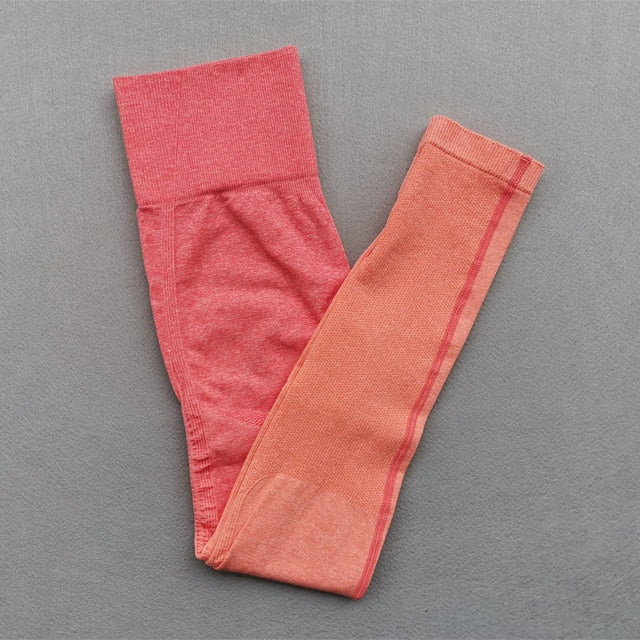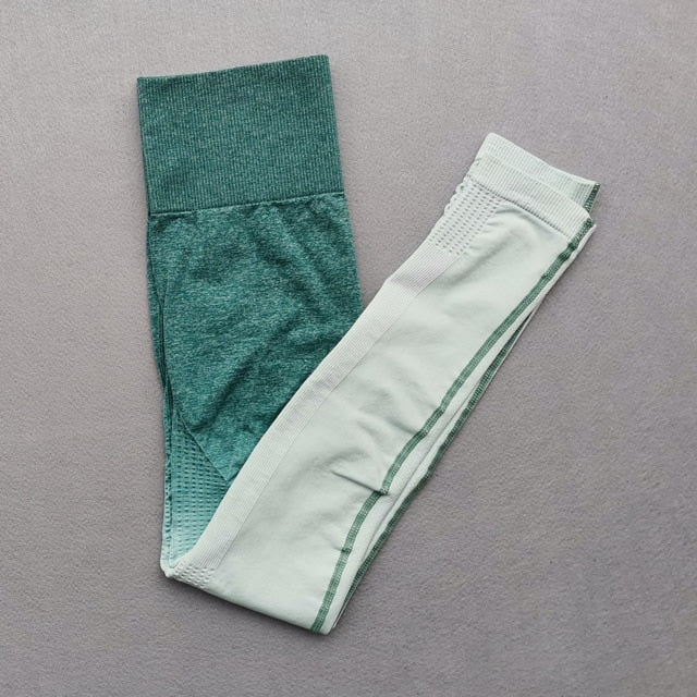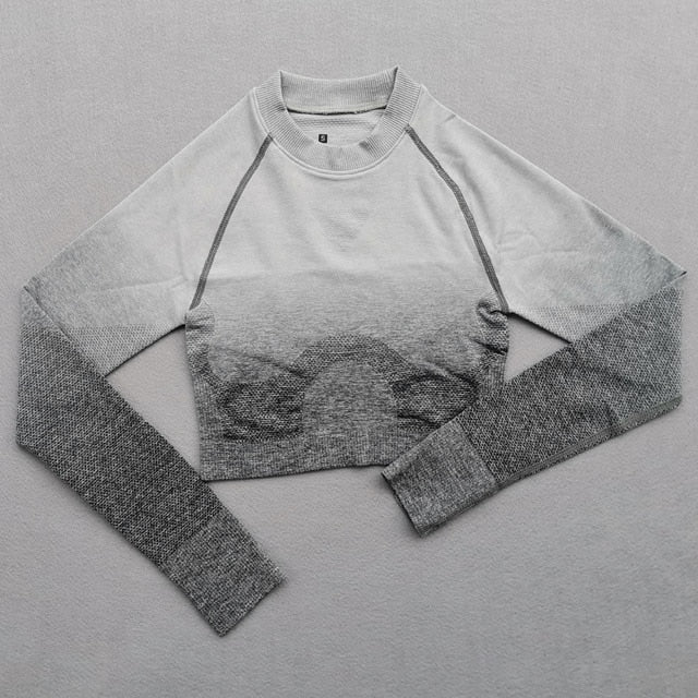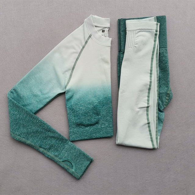 Women Yoga Set Gym Clothing Ombre Seamless Gradient Leggings+Long sleeve Top Workout Sport Suit Women Fitness Set Active Wear